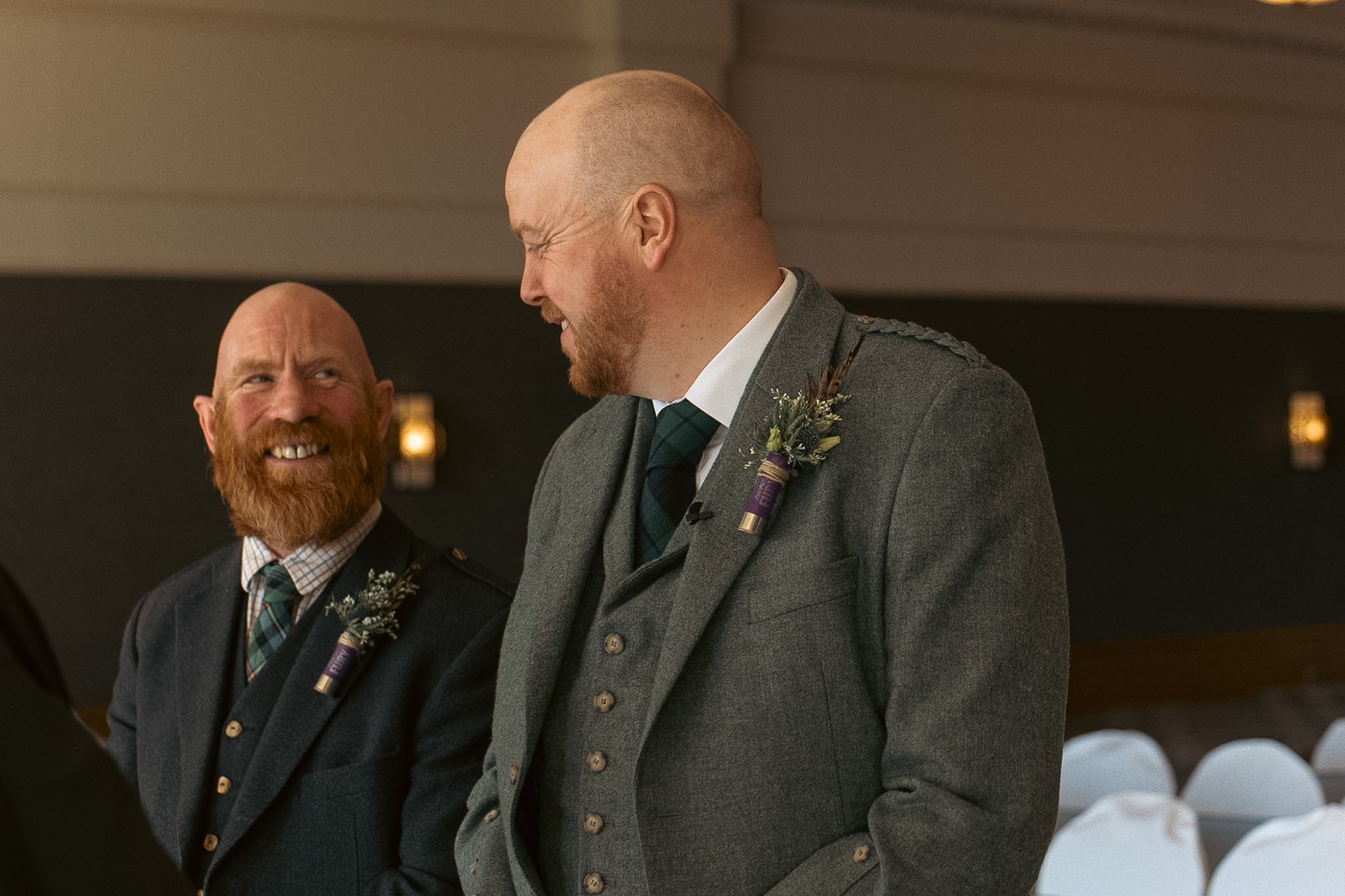 The wedding itself was filled with everything you could hope for—happy tears, heartfelt moments, and so much laughter. The atmosphere at Invercarse Hotel was warm and welcoming, making it the perfect Dundee wedding venue for such an intimate and emotional celebration. From the quiet, emotional moments during the ceremony to the bursts of laughter during speeches, every part of the day told a story worth remembering.