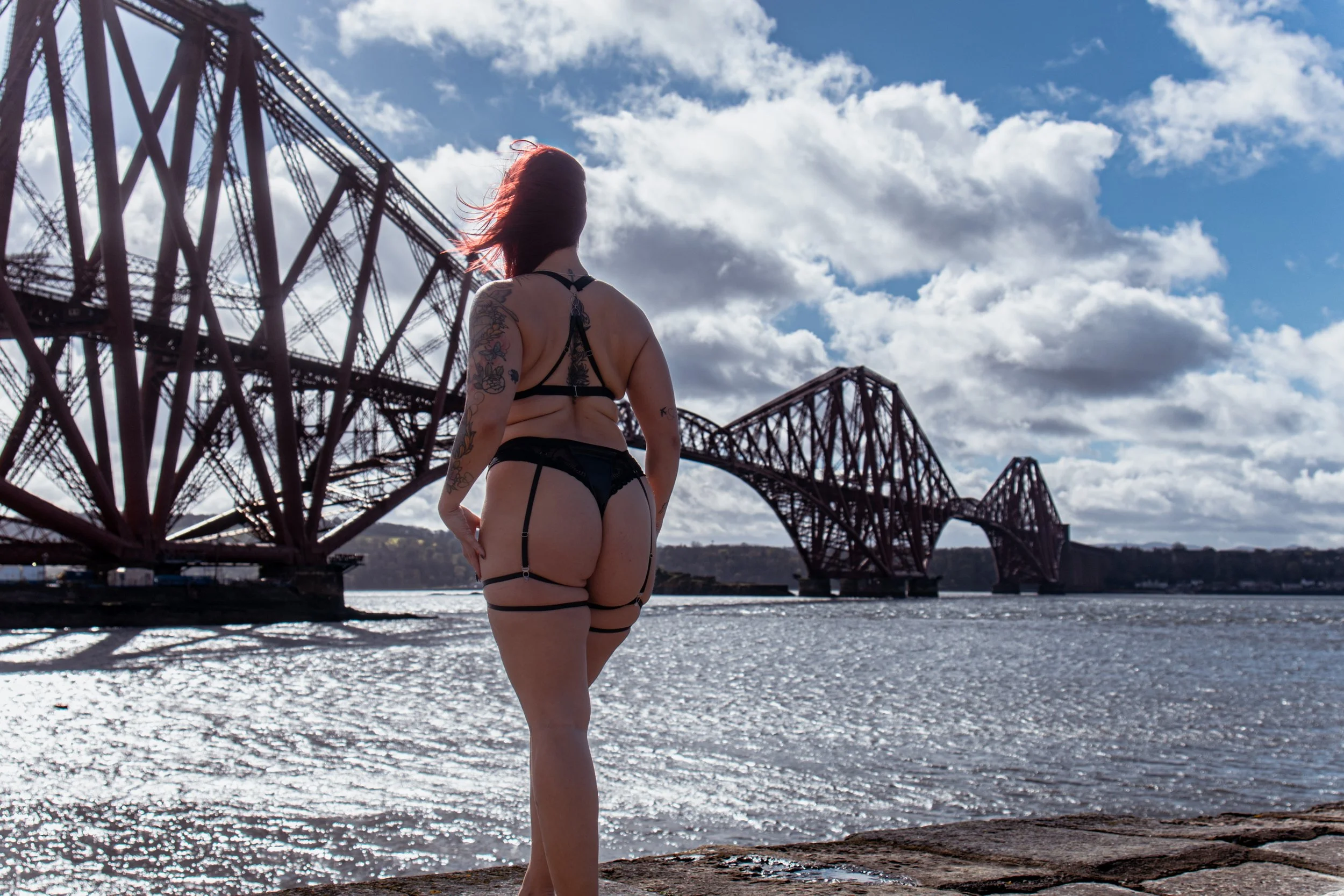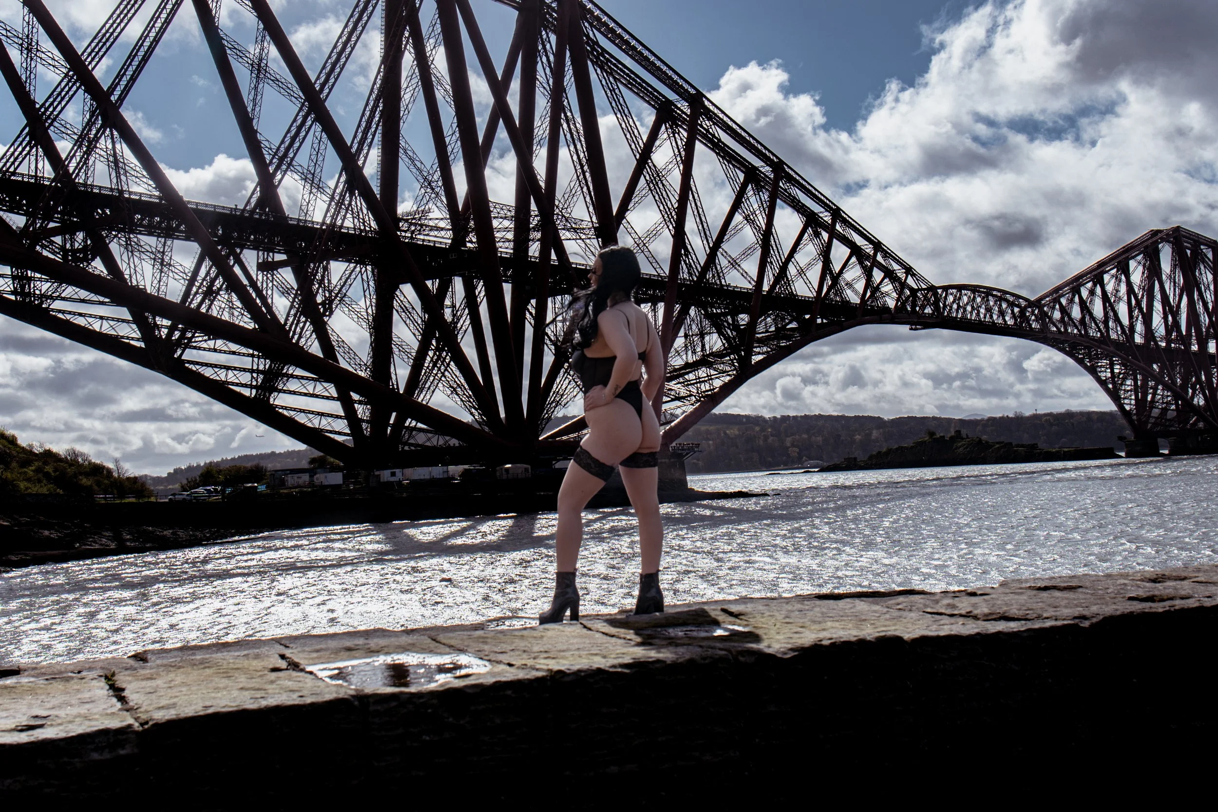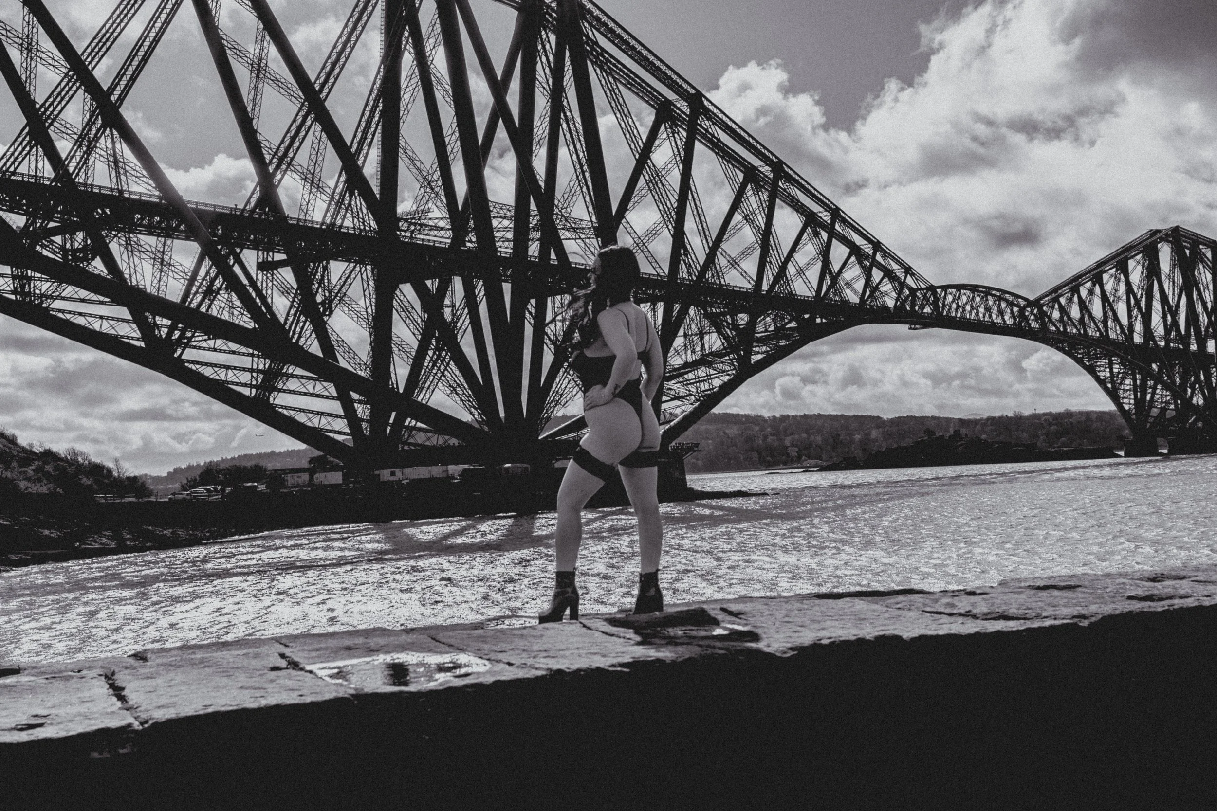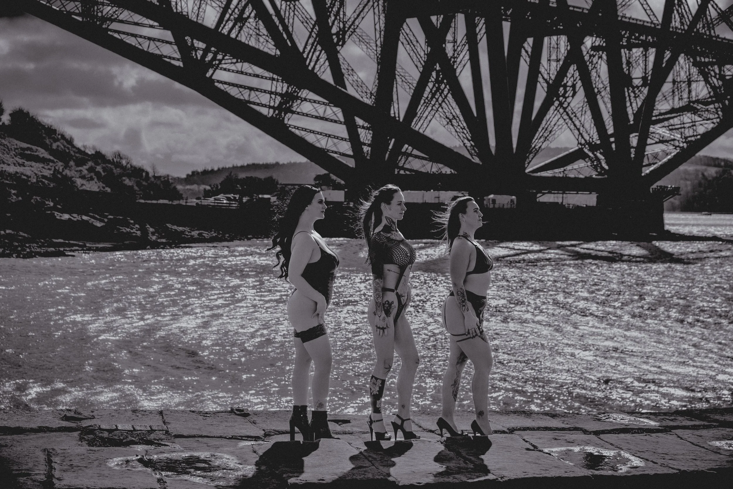 Against the dramatic backdrop of the Forth Railway Bridge, these women owned their space completely. The contrast between soft, intimate moments and the bold, industrial structure behind them created a striking visual story—one that speaks of strength, beauty, and individuality.