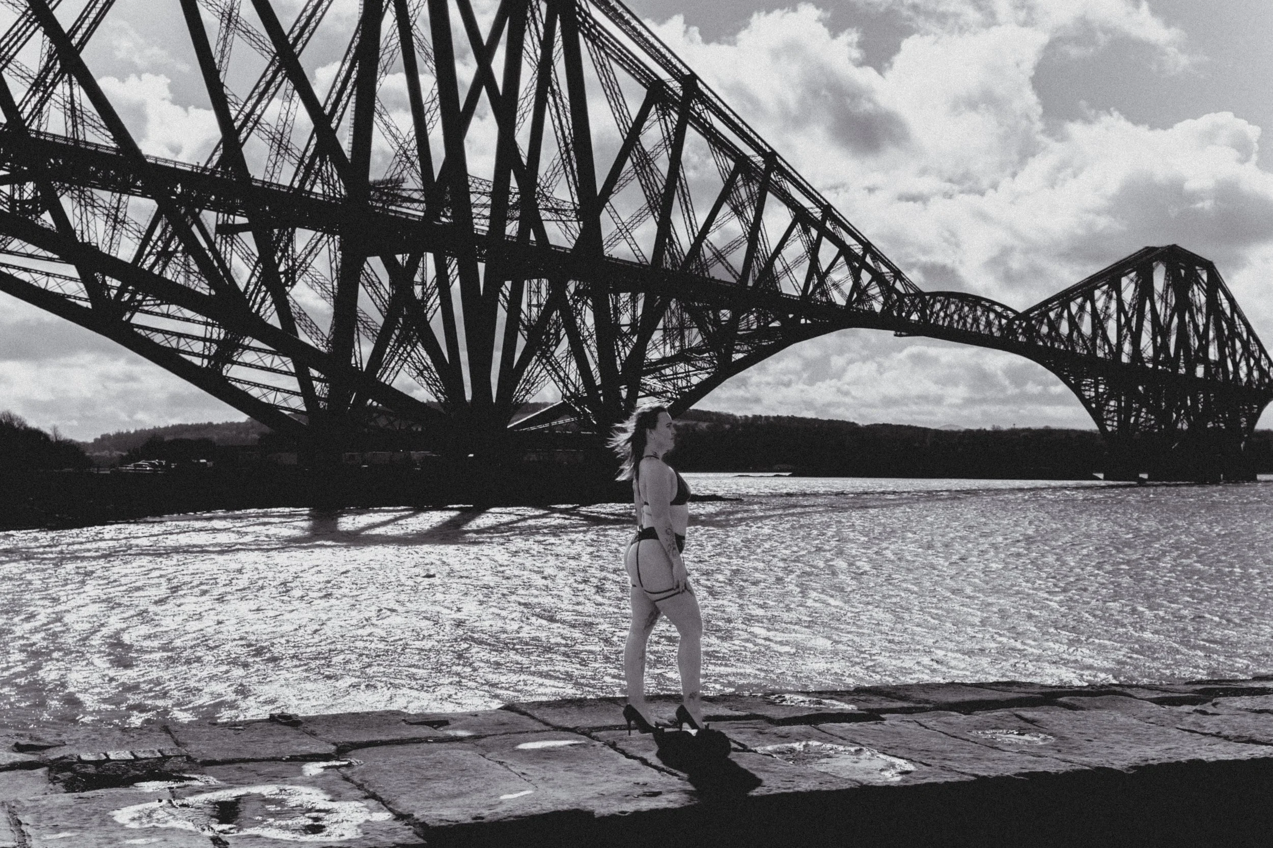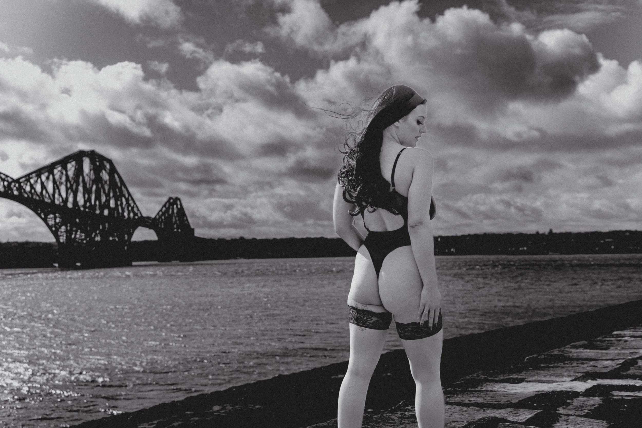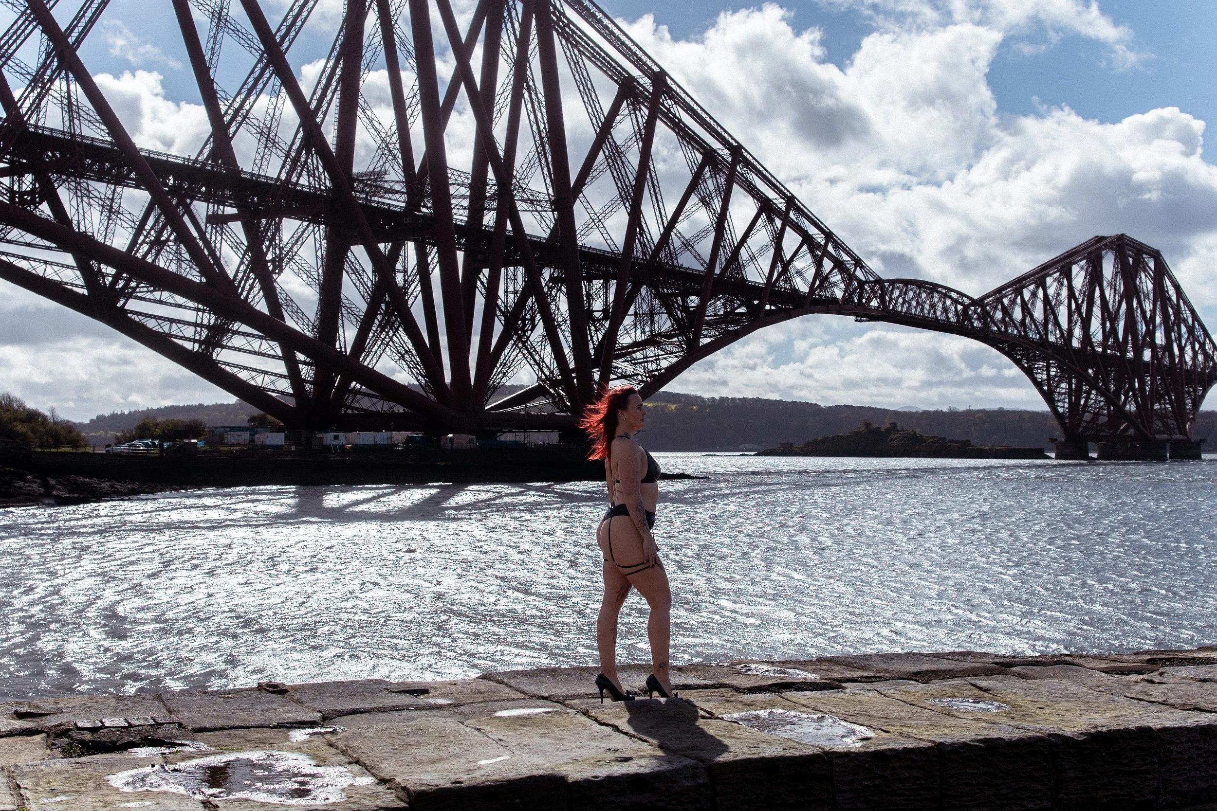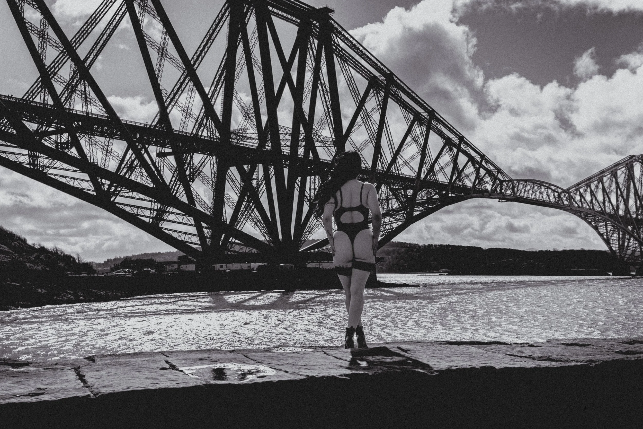 Against the dramatic backdrop of the Forth Railway Bridge, these women owned their space completely. The contrast between soft, intimate moments and the bold, industrial structure behind them created a striking visual story—one that speaks of strength, beauty, and individuality.