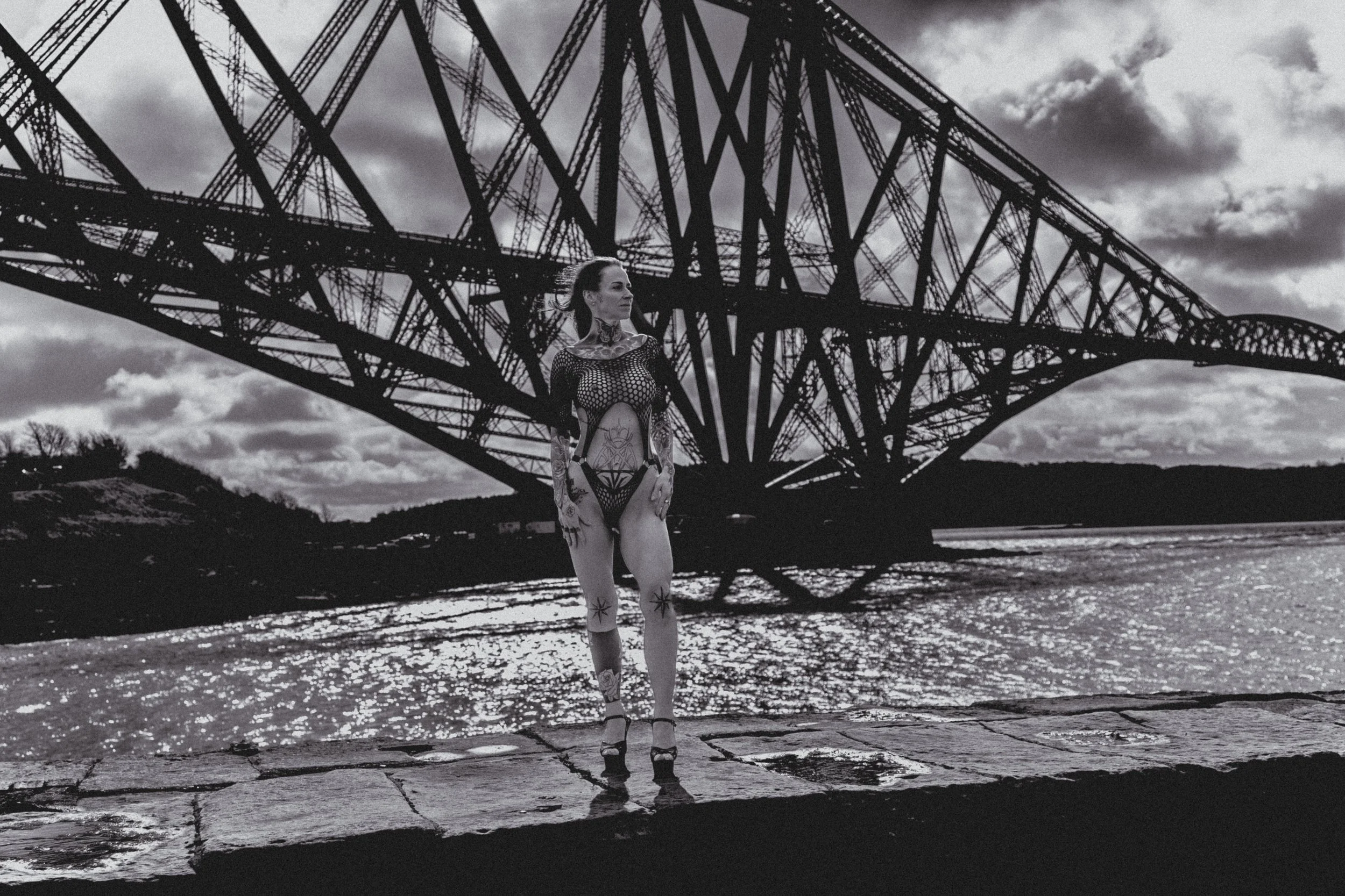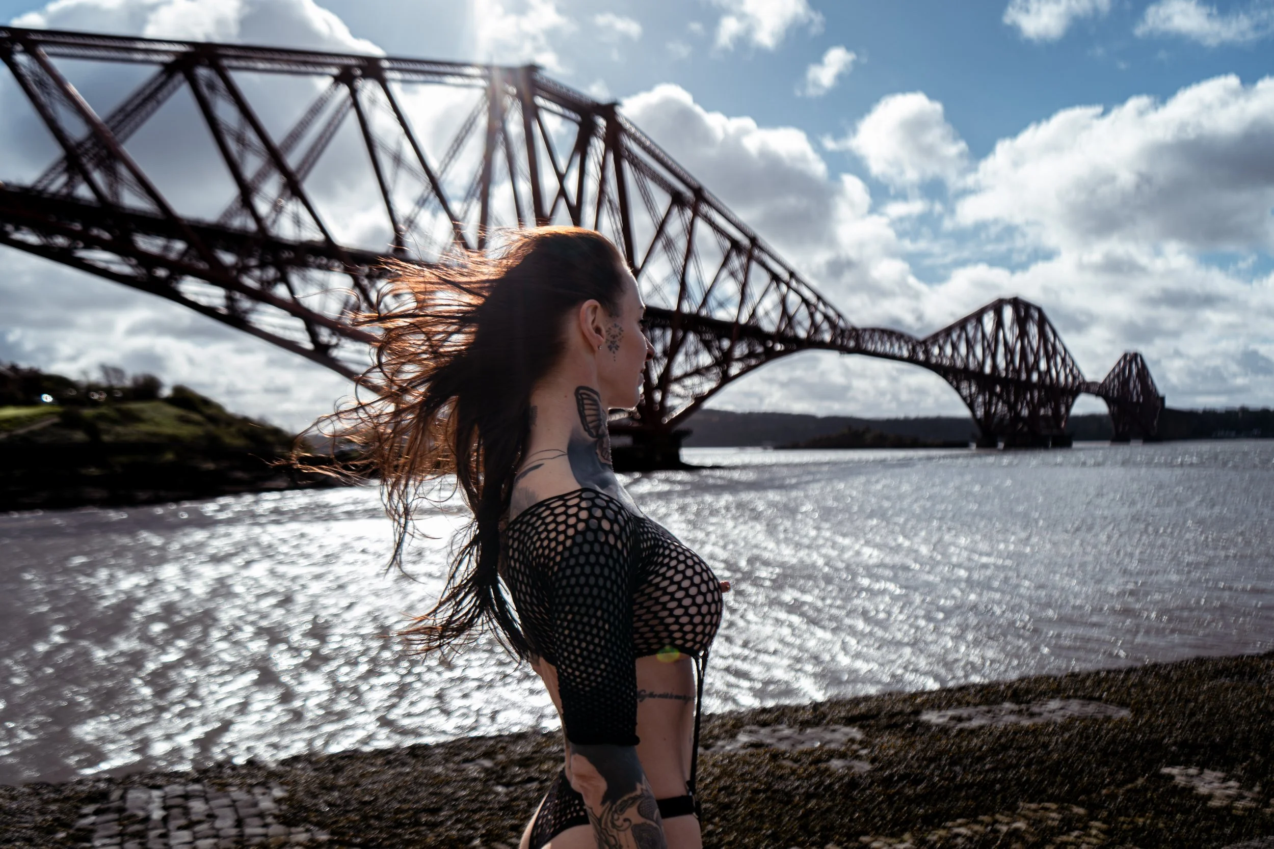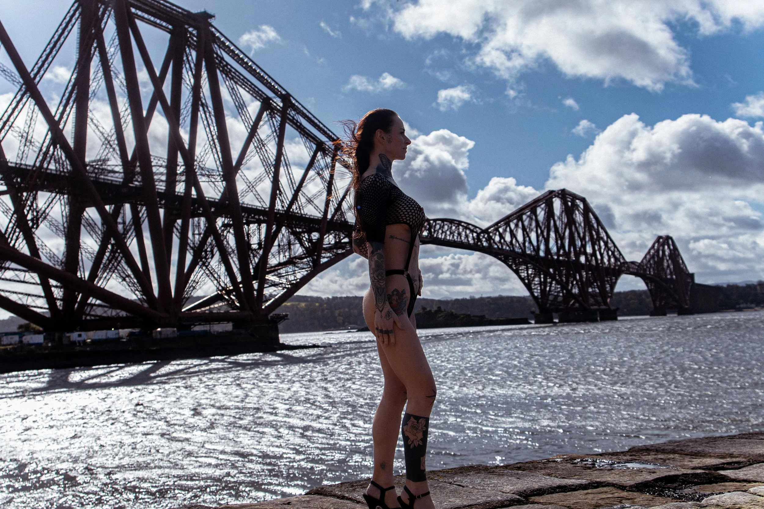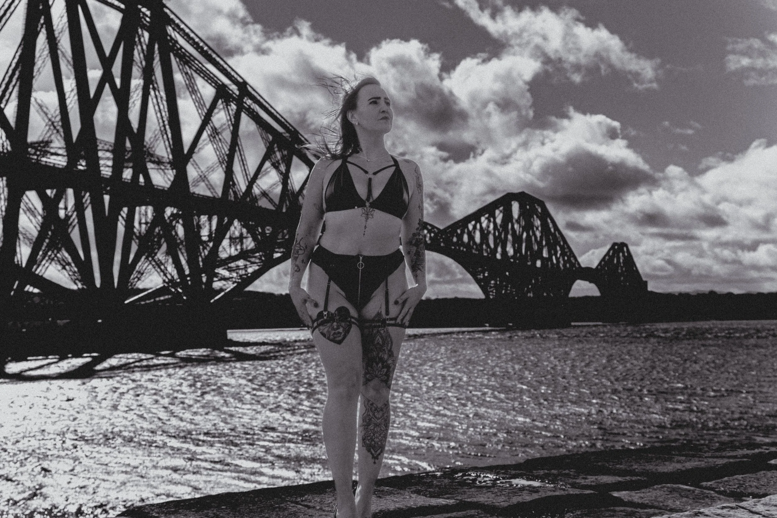 Against the dramatic backdrop of the Forth Railway Bridge, these women owned their space completely. The contrast between soft, intimate moments and the bold, industrial structure behind them created a striking visual story—one that speaks of strength, beauty, and individuality.