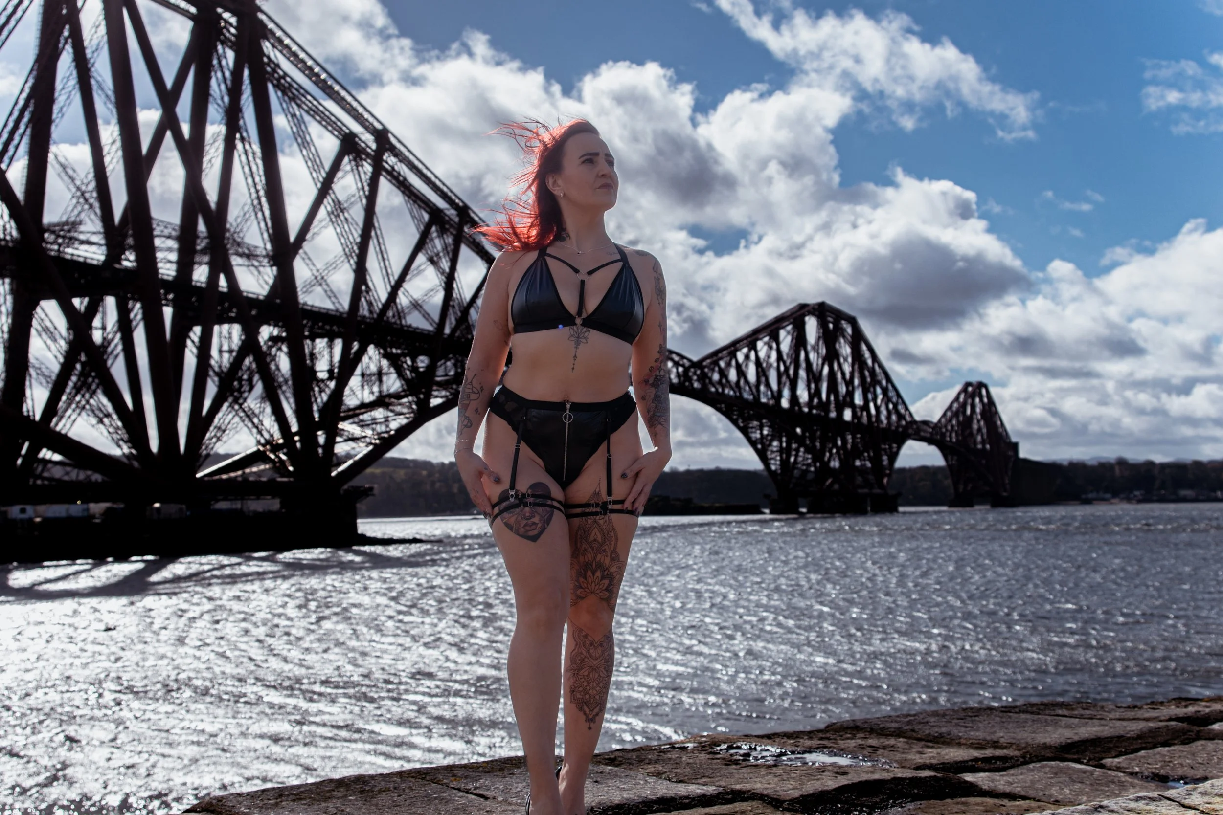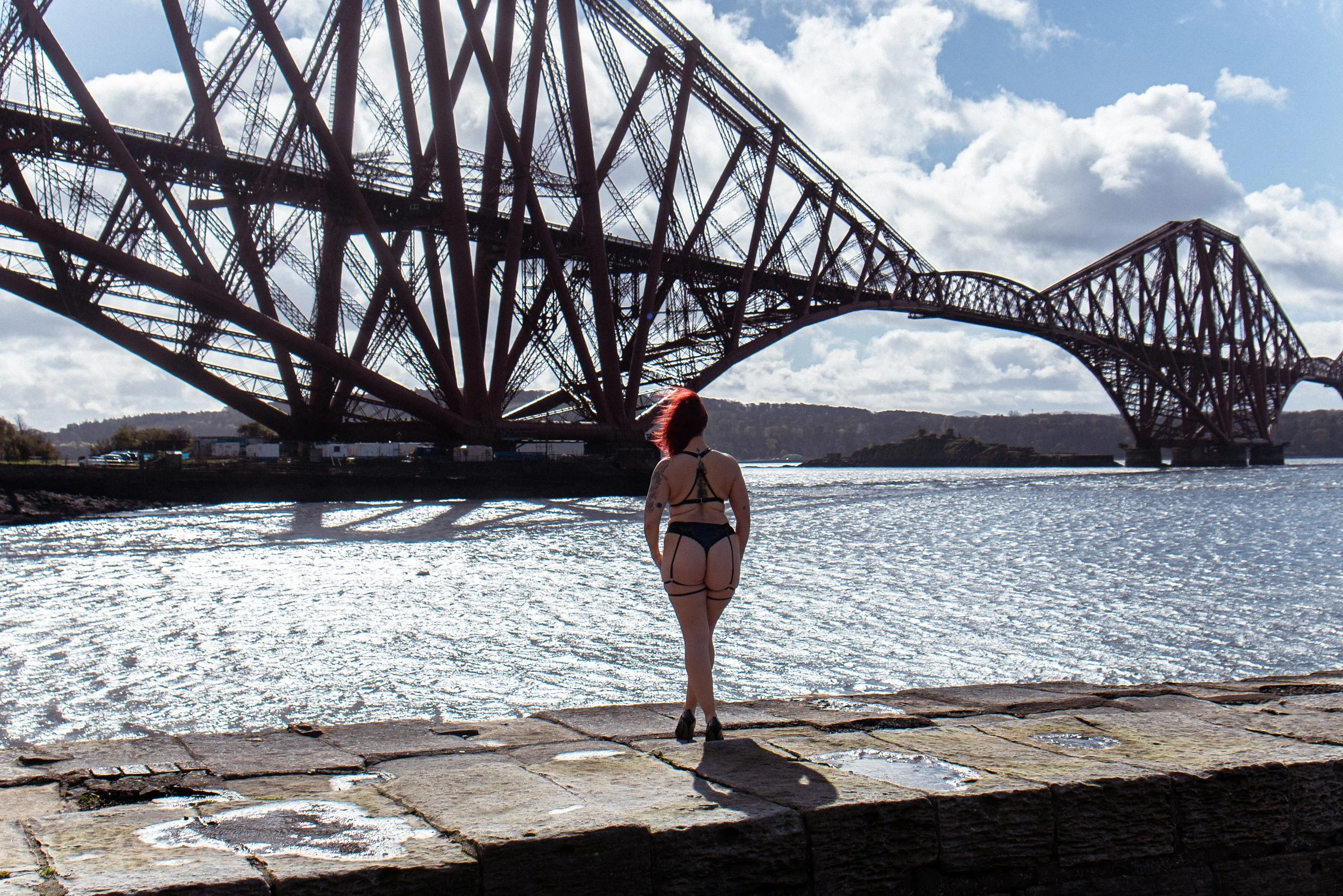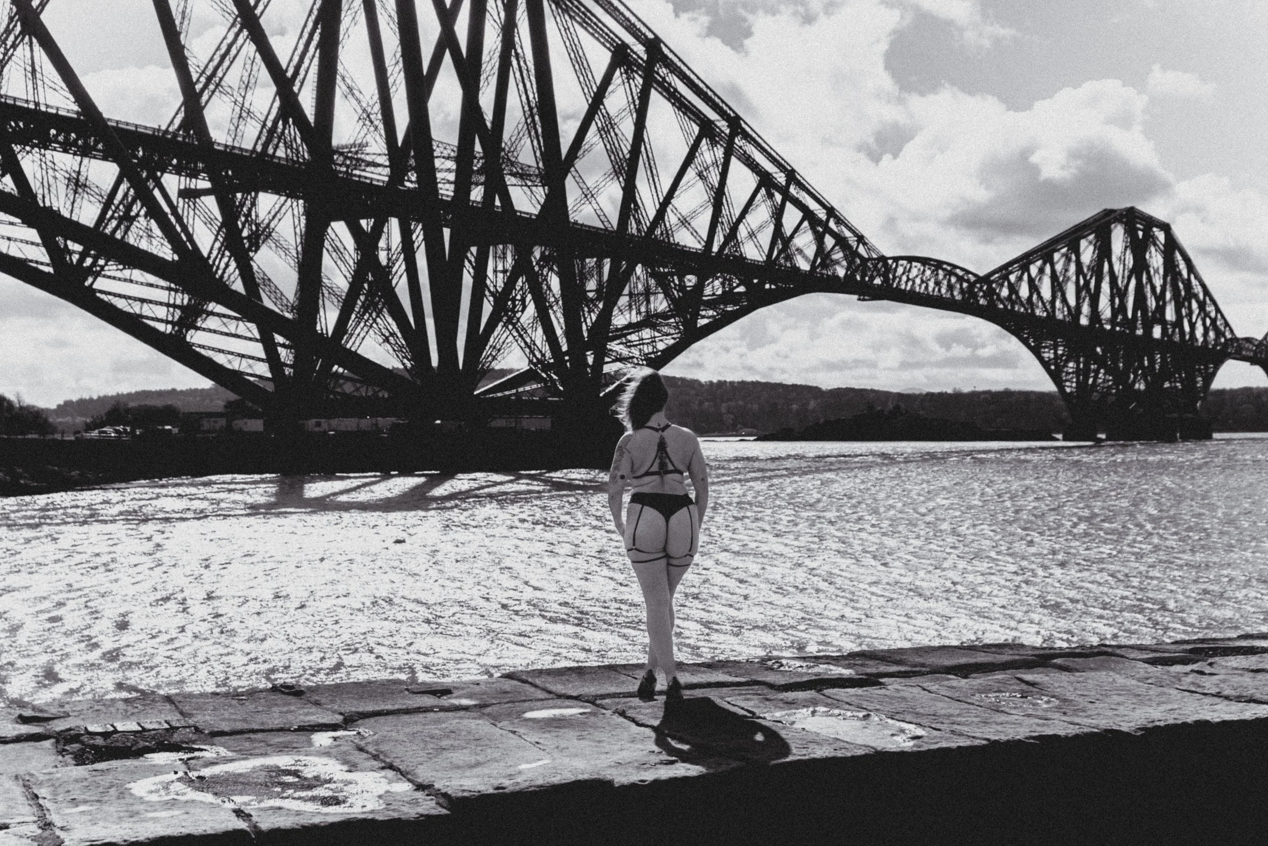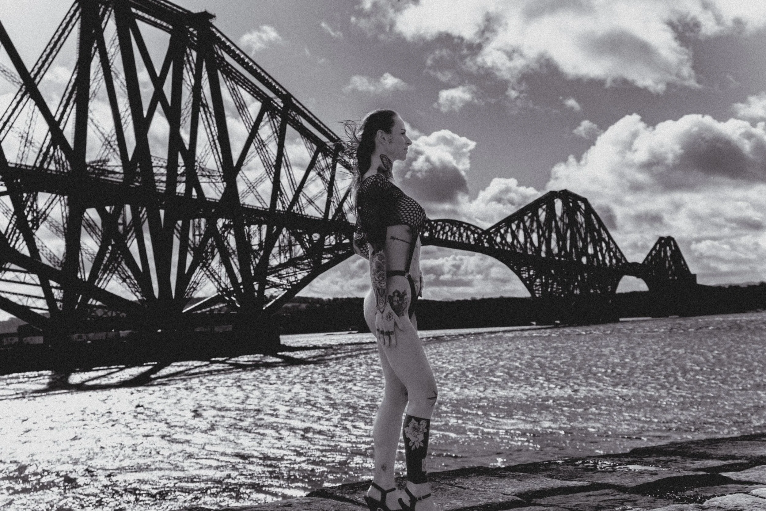 Against the dramatic backdrop of the Forth Railway Bridge, these women owned their space completely. The contrast between soft, intimate moments and the bold, industrial structure behind them created a striking visual story—one that speaks of strength, beauty, and individuality.